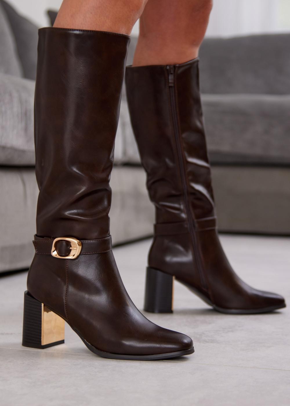 0 Bota Cano Alto Castanha c/ Fivela 29,99 € 37,99 € Desconto de %. Modelo elegante e cheio de presença.A fivela dourada e o salto bloco (8cm) em detalhe metalizado elevam o modelo a outro nível. O complemento ideal para vestidos de meia-estação ou casacos longos Ler mais Tamanho 36 39 40 41 Quantidade Comprar Contactar Partilhar