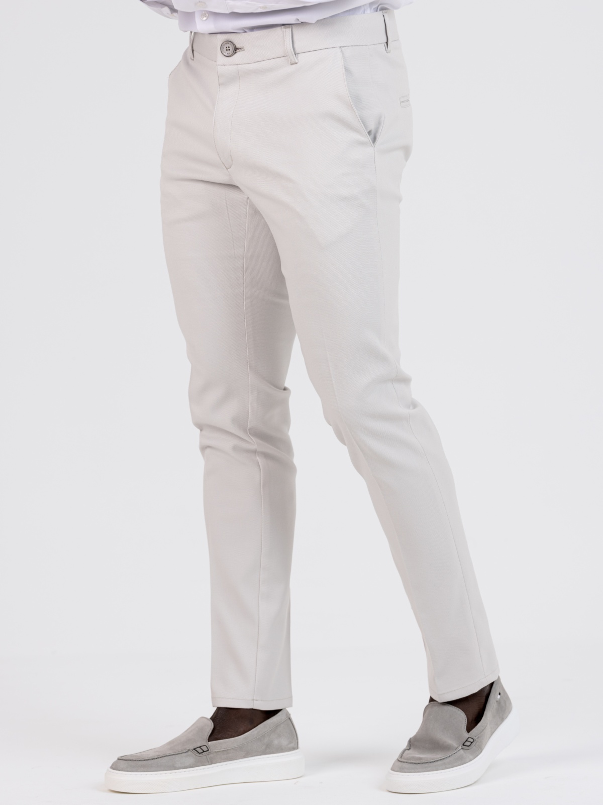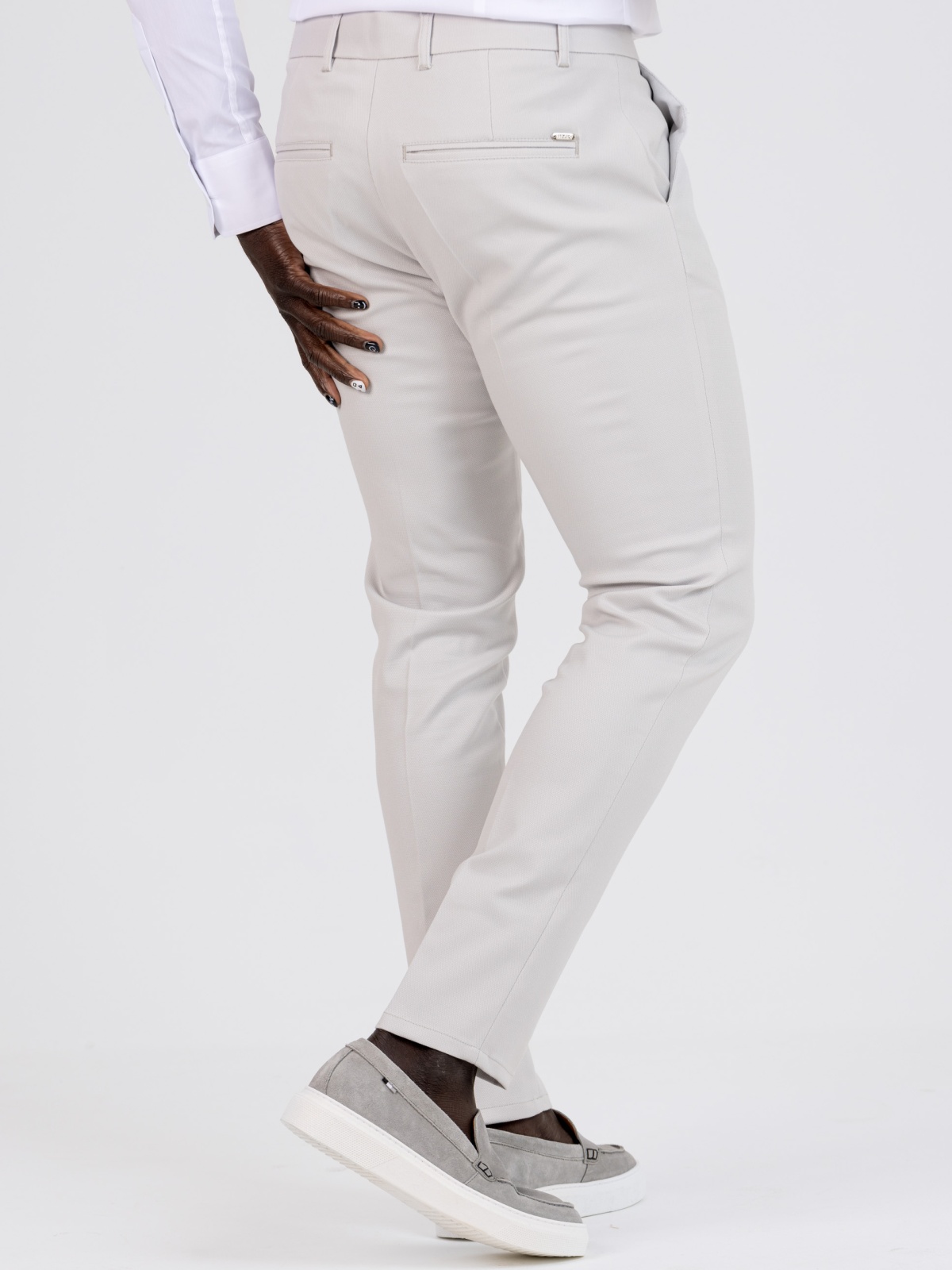 - Tecido estruturado com leve textura, garantindo um visual sofisticado e ótimo ajuste;