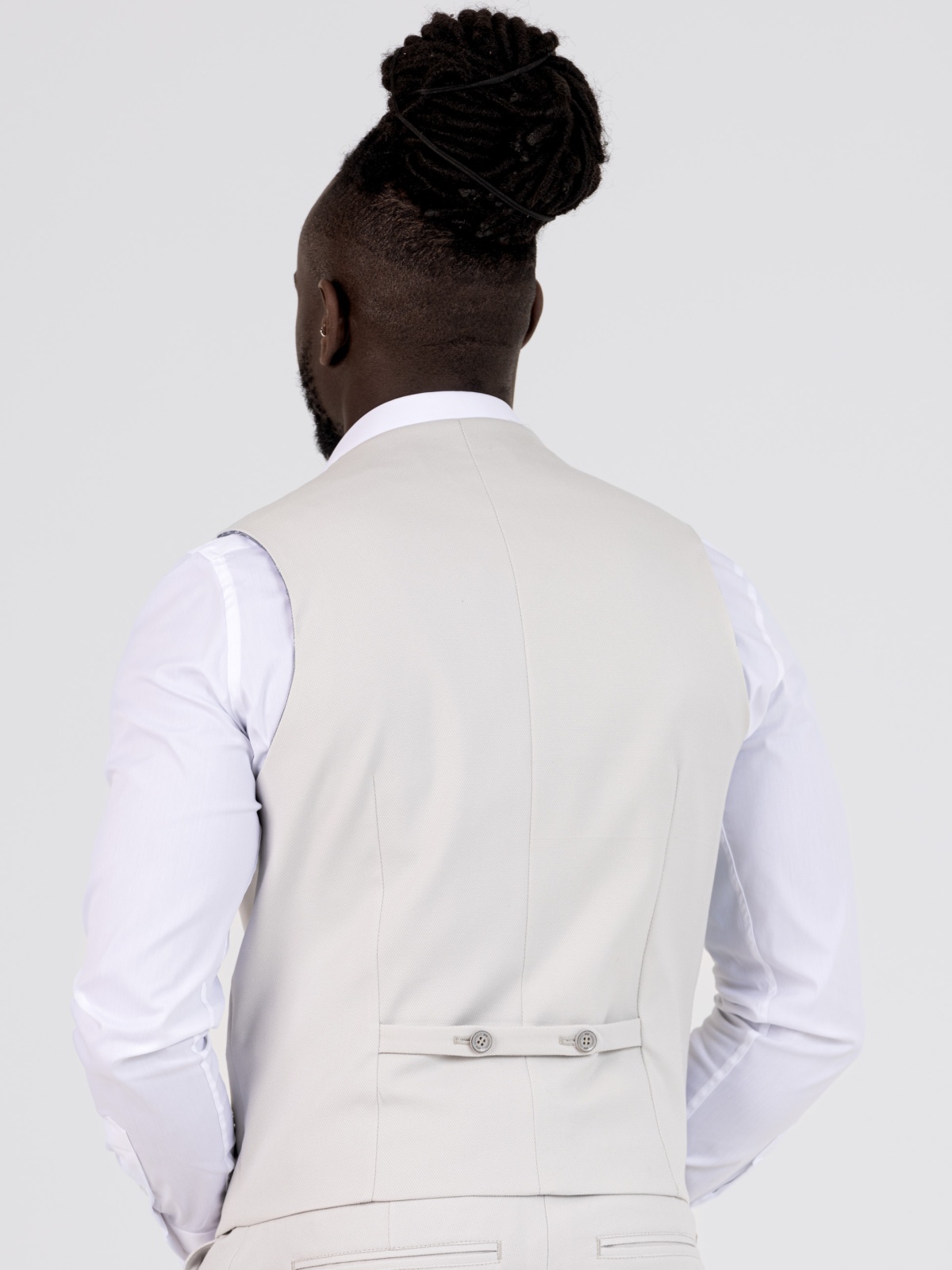 - Costas lisas com ajuste por fivela dupla, permitindo adaptar a peça ao corpo de forma precisa;