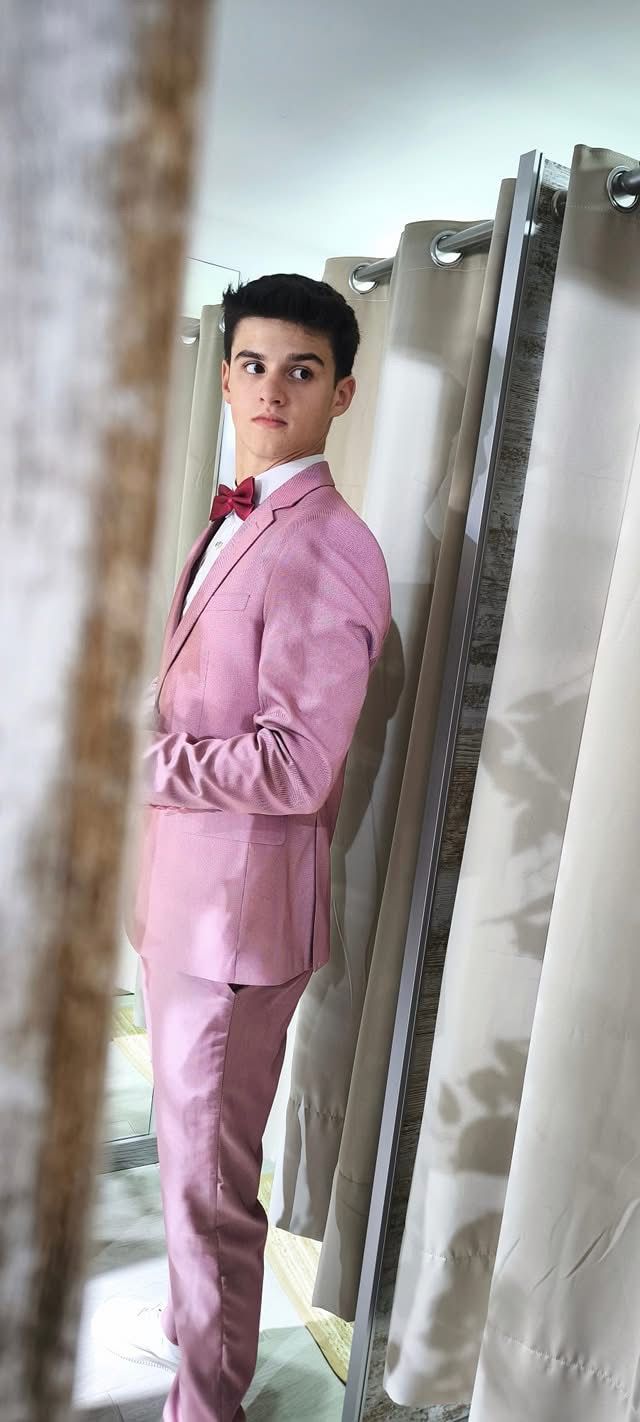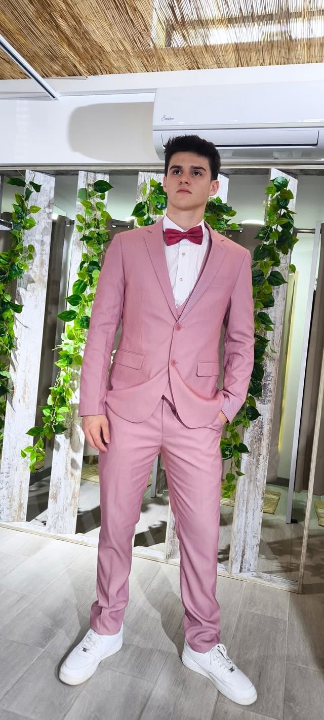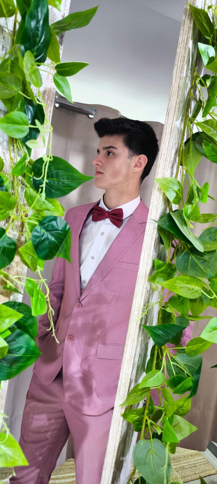 Este fato apresenta um corte direito que garante conforto e elegância em qualquer ocasião especial. O blazer possui lapela clássica, bolsos com aba e 2 fechos de botão. As calças têm presilhas na cinta para colocar cinto, bolsos e têm um corte reto.