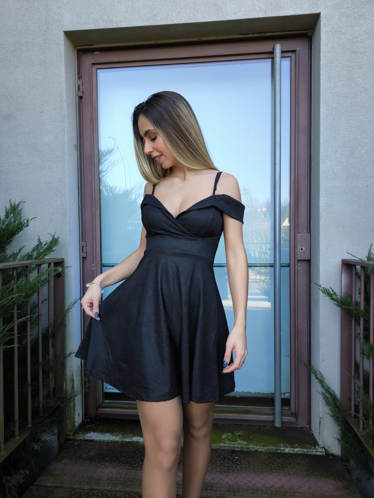 Vestido curto com saia godé e brilhos