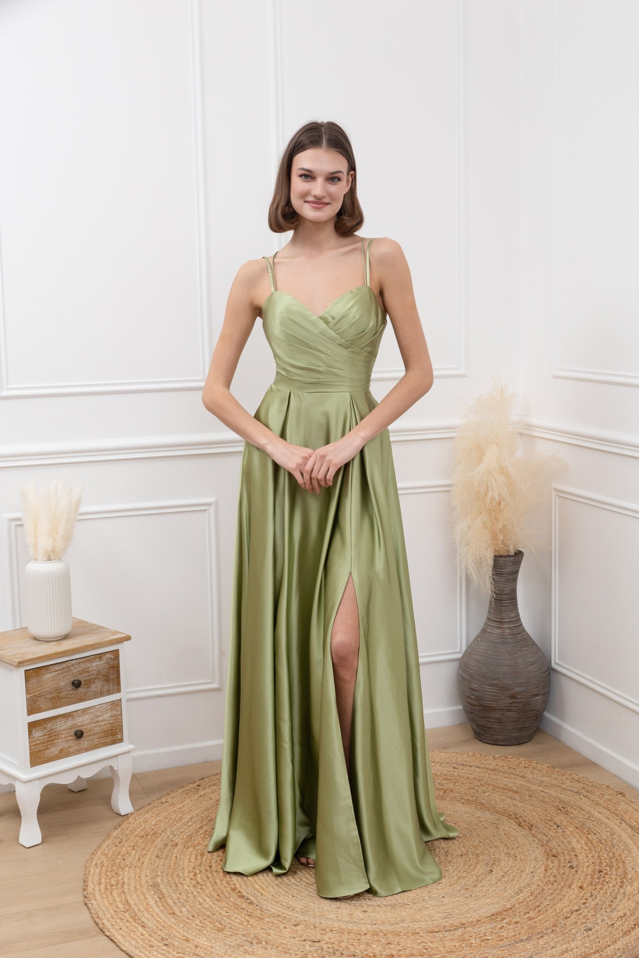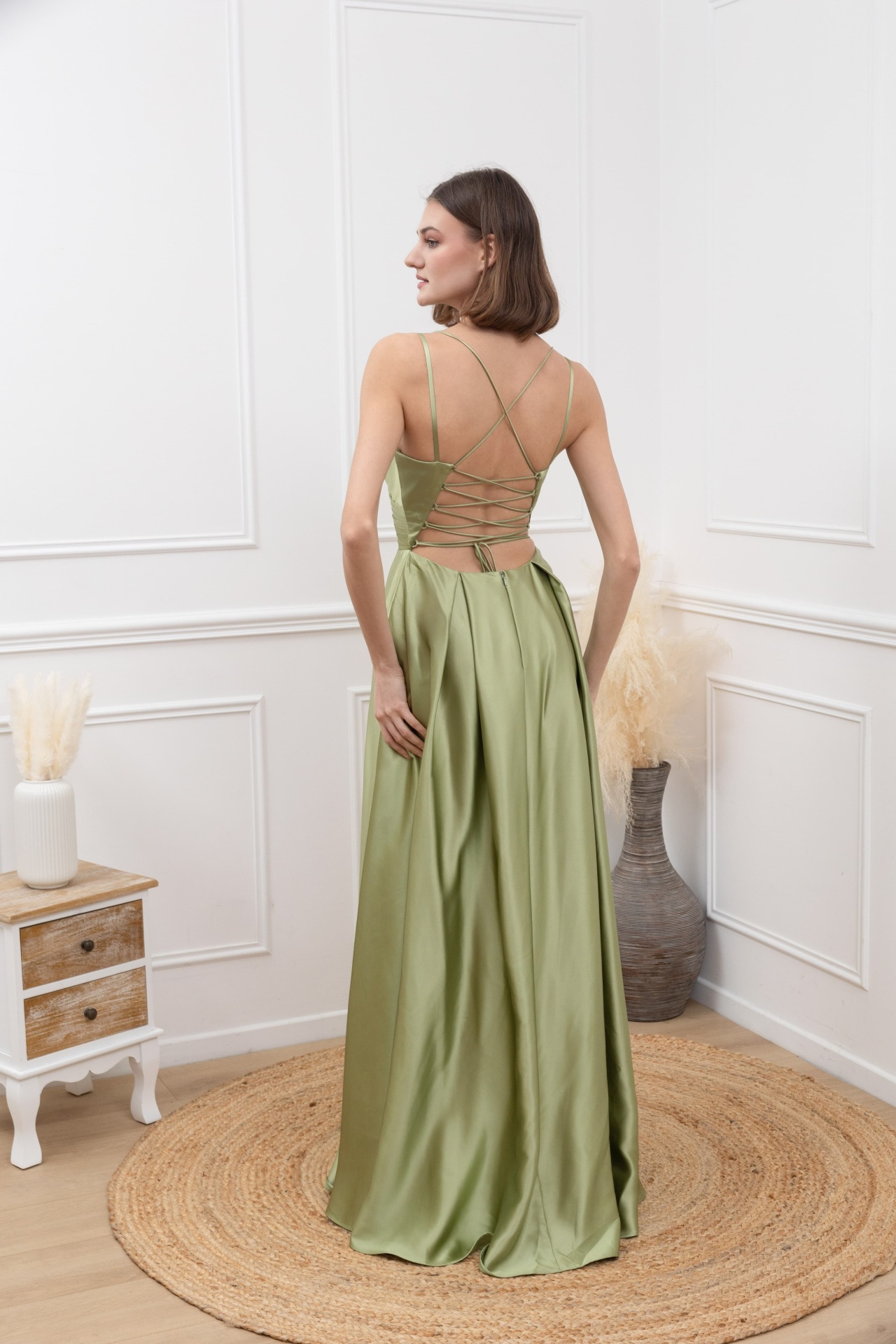 Vestido minimalista em cetim, ideal para quem procura um vestido que valorize elegância e simplicidade. O corpete ajustado apresenta uma copa estruturada, garantindo conforto e suporte e tem decote em V em trespasse.