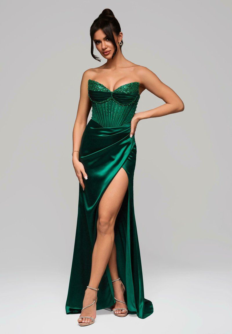 Vestido longo de cerimónia com um design marcante e sofisticado, pensado para ocasiões especiais onde a elegância é essencial.