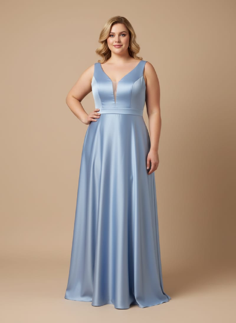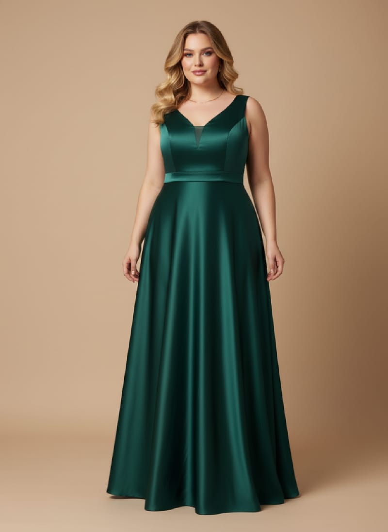 O decote em “V” alonga o colo de forma harmoniosa, enquanto o corpete estruturado oferece suporte e um ajuste perfeito.