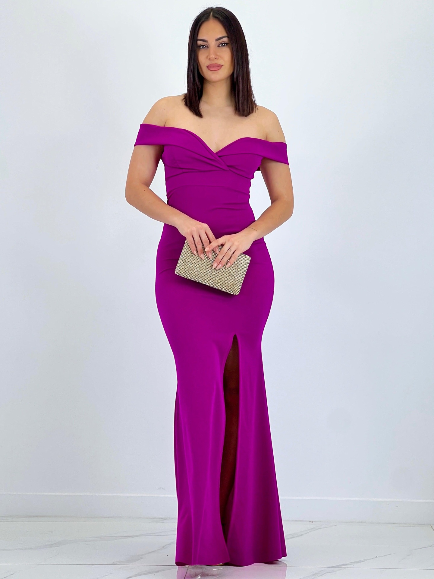 O estilo sereia é conhecido por ser um modelo justo que depois se abre na parte inferior. O decote barco é caracterizado por ser amplo e reto, indo de ombro a ombro.